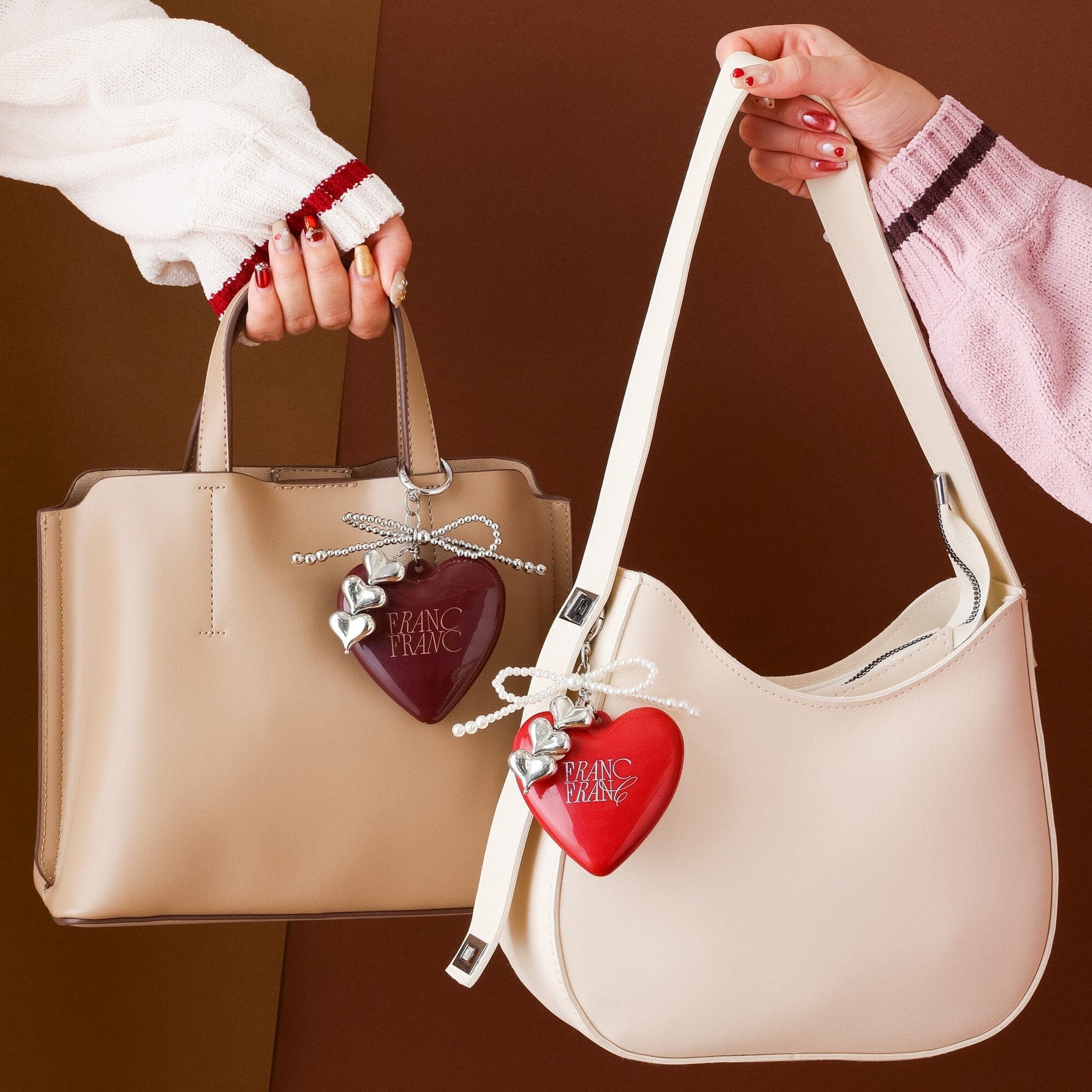It comes with a carabiner, so you can attach it to your bag as a large heart charm. When opened, it reveals a mirror and brush, perfect for quick lip or hair touch-ups on the go.
