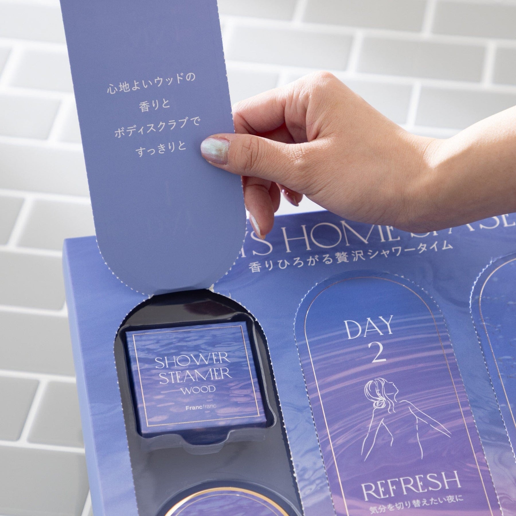 This is a body care set that allows you to enjoy a shower steamer on a different day for three days.
