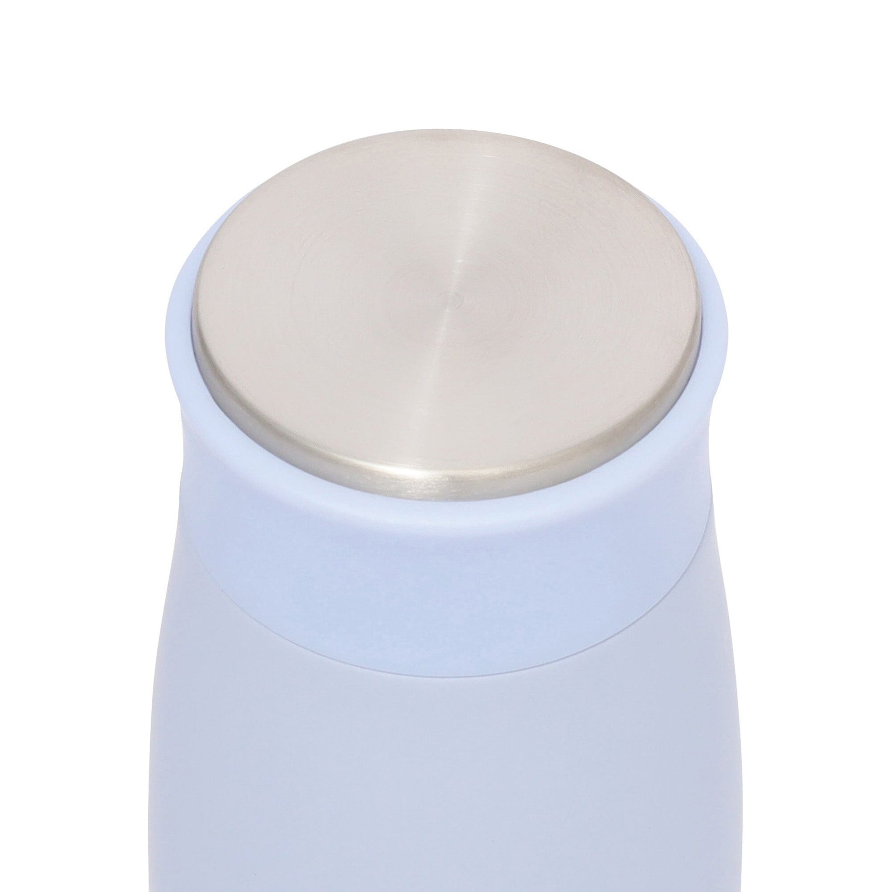 This stainless steel bottle has an elegant look, with a metallic sheen that stands out against its matte finish.