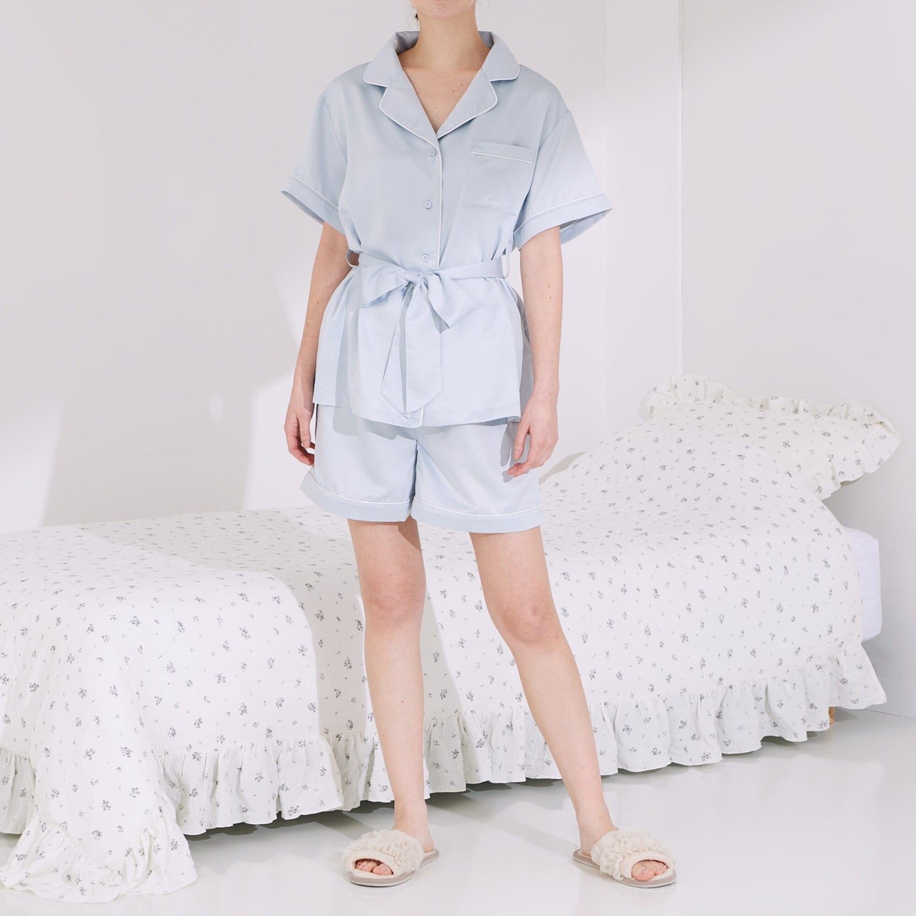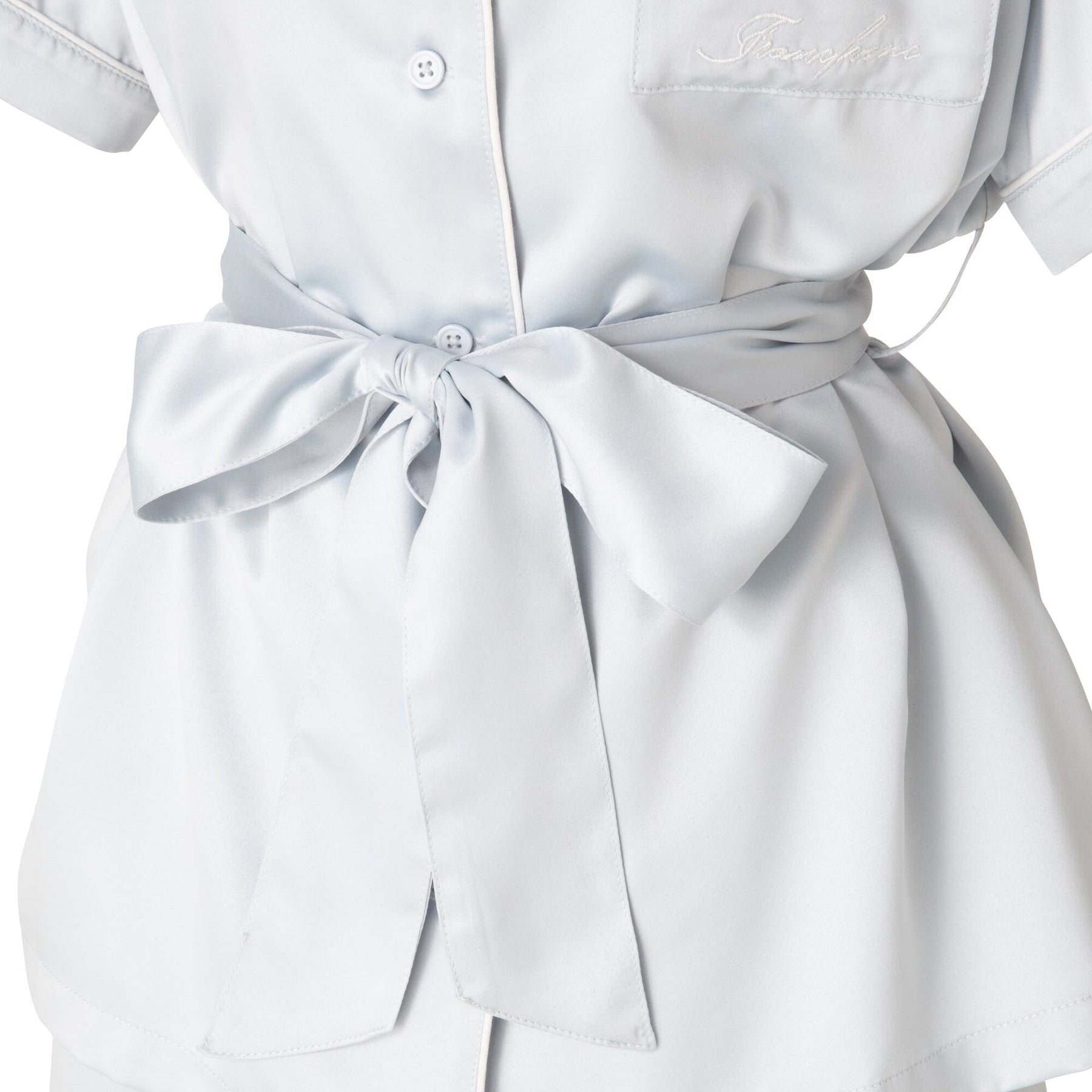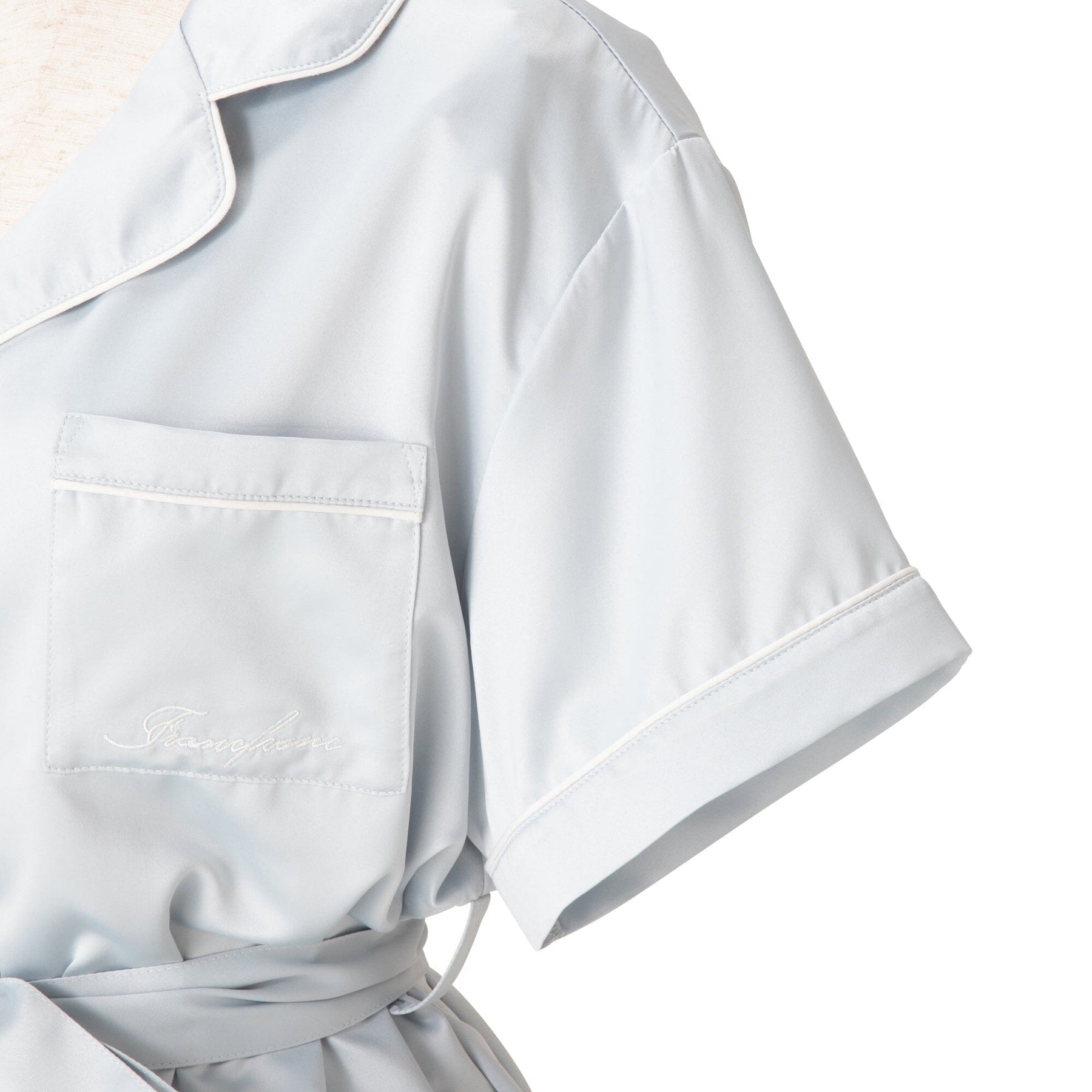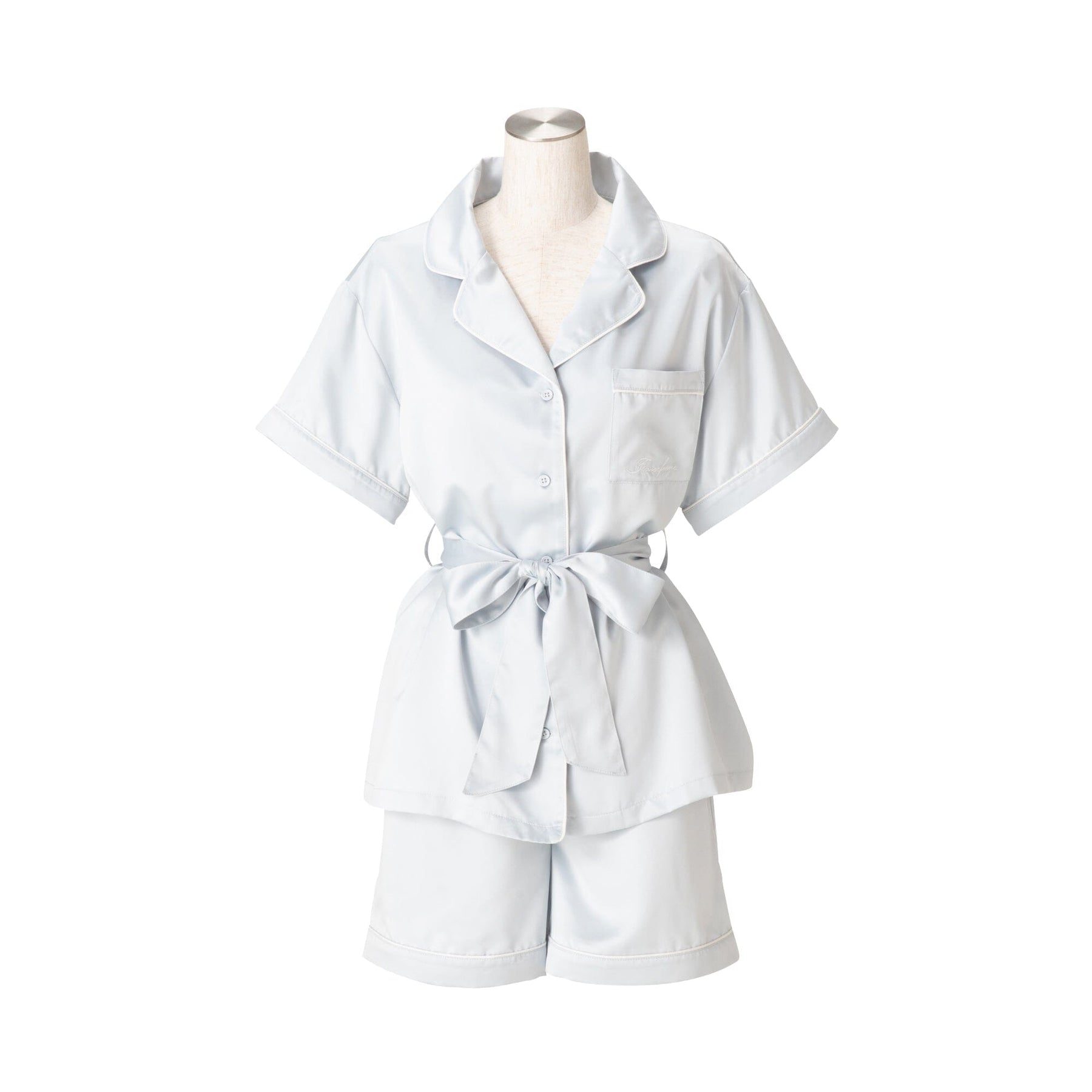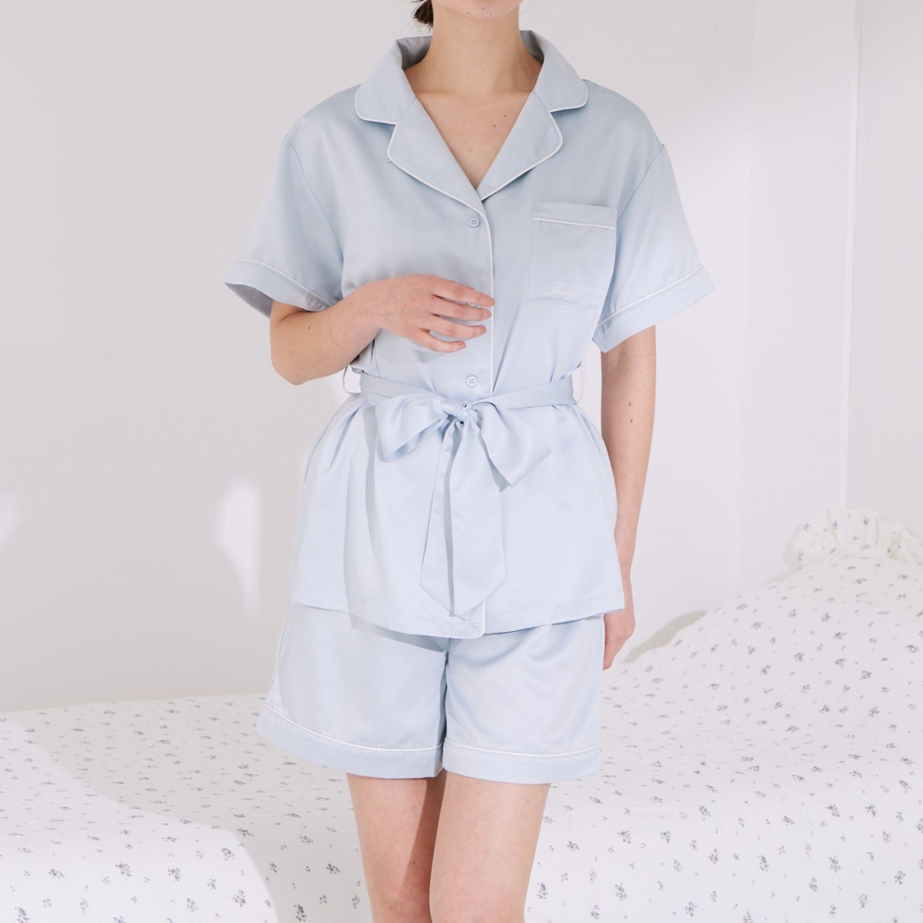 A popular, classic pair of elegant pajamas featuring an embroidered logo.The soft satin fabric is treated with hyaluronic acid, making it comfortable to wear even for long periods of time, for an even smoother feel against the skin.