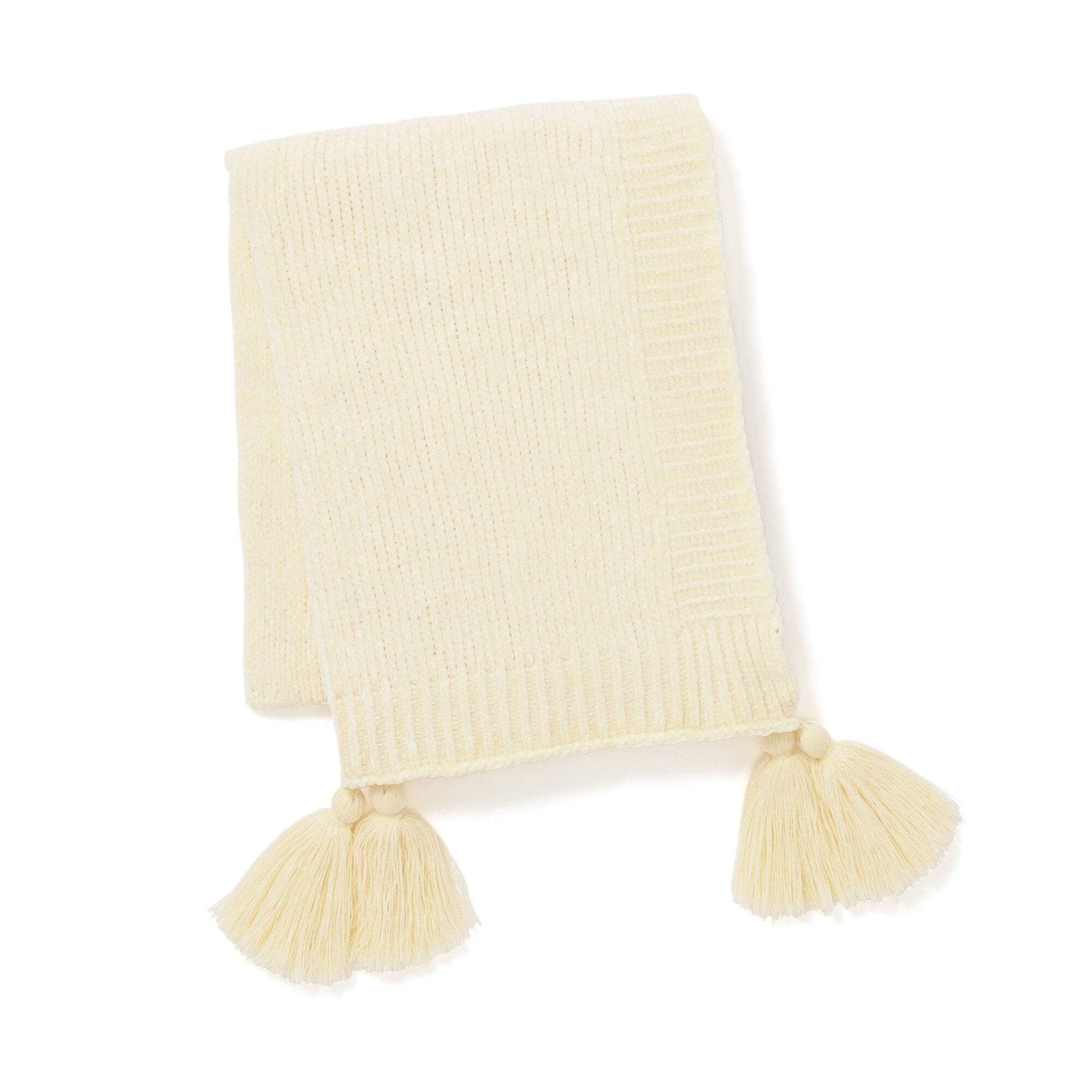 This throw (lap blanket) is knitted with lustrous mohair yarn for a soft, fluffy feel.The large tassels enhance the timeless, natural design. The airy, fluffy, and soft feel makes it a delight to wear.