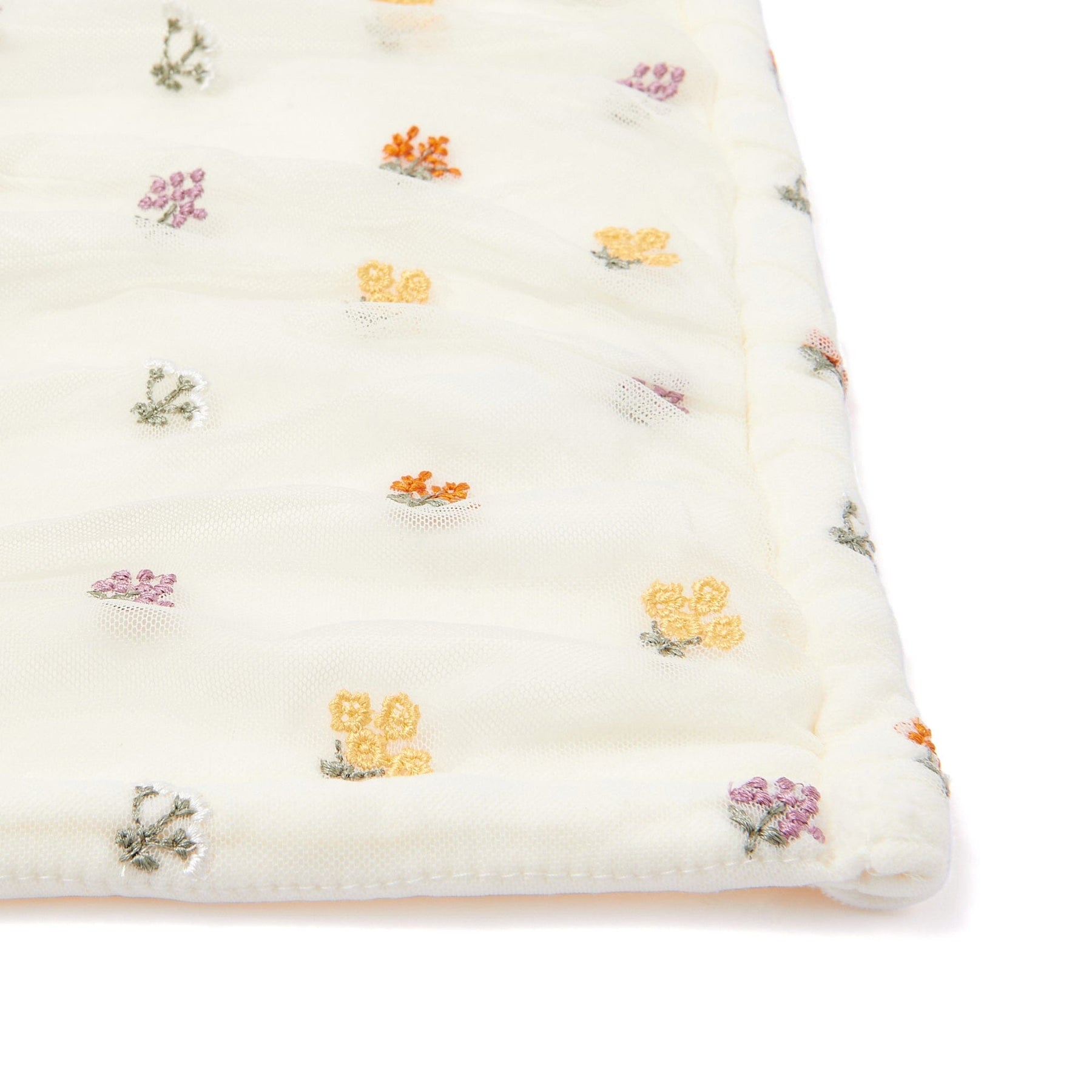 This trendy throw features spring-like tulle and cute floral embroidery.Made of microfiber for a soft feel, the gathered tulle with floral embroidery creates a soft, three-dimensional, and luxurious appearance.