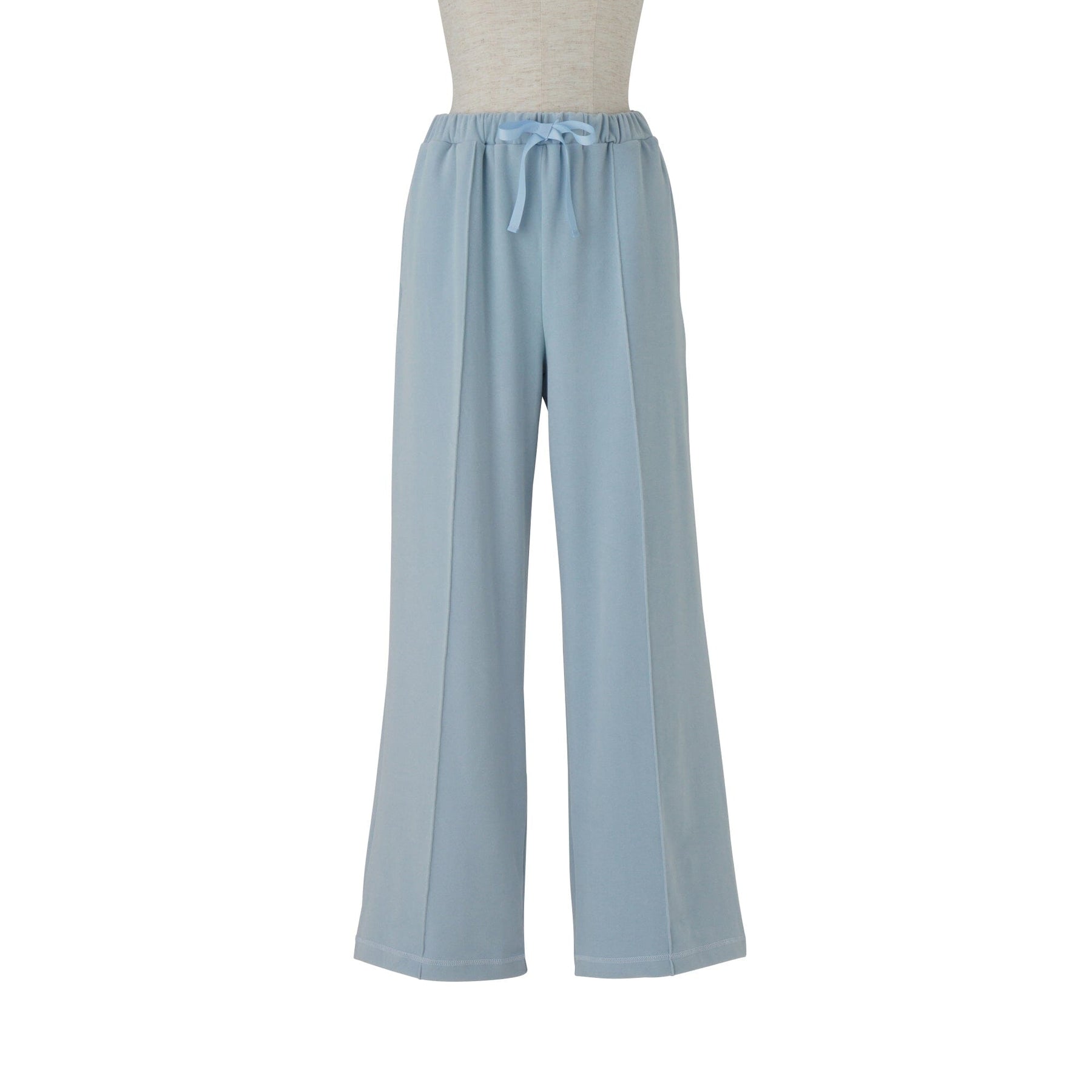 This sweatsuit loungewear features a highly stretchable fabric with moisture-wicking and release properties. "Moisture-wicking" processing absorbs moisture when humidity levels are high and releases it when temperatures are dry. You can expect a dry, comfortable fit at all times. The top and bottoms feature a flattering vertical line at the center. It creates a streamlined silhouette. Perfect for loungewear, or as relaxing wear for long trips by plane or car. The bottoms feature pockets. Made with moisture-wicking fabric. Experiences may vary depending on the environment and individual preferences. The effects of this processing are not permanent. The color of the model wearing the item may appear different depending on the shooting environment (location, lighting, etc.). Please refer to the individual image for color reference.