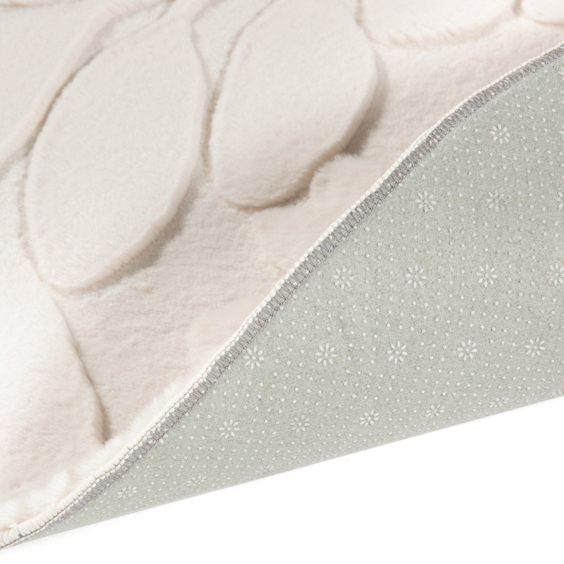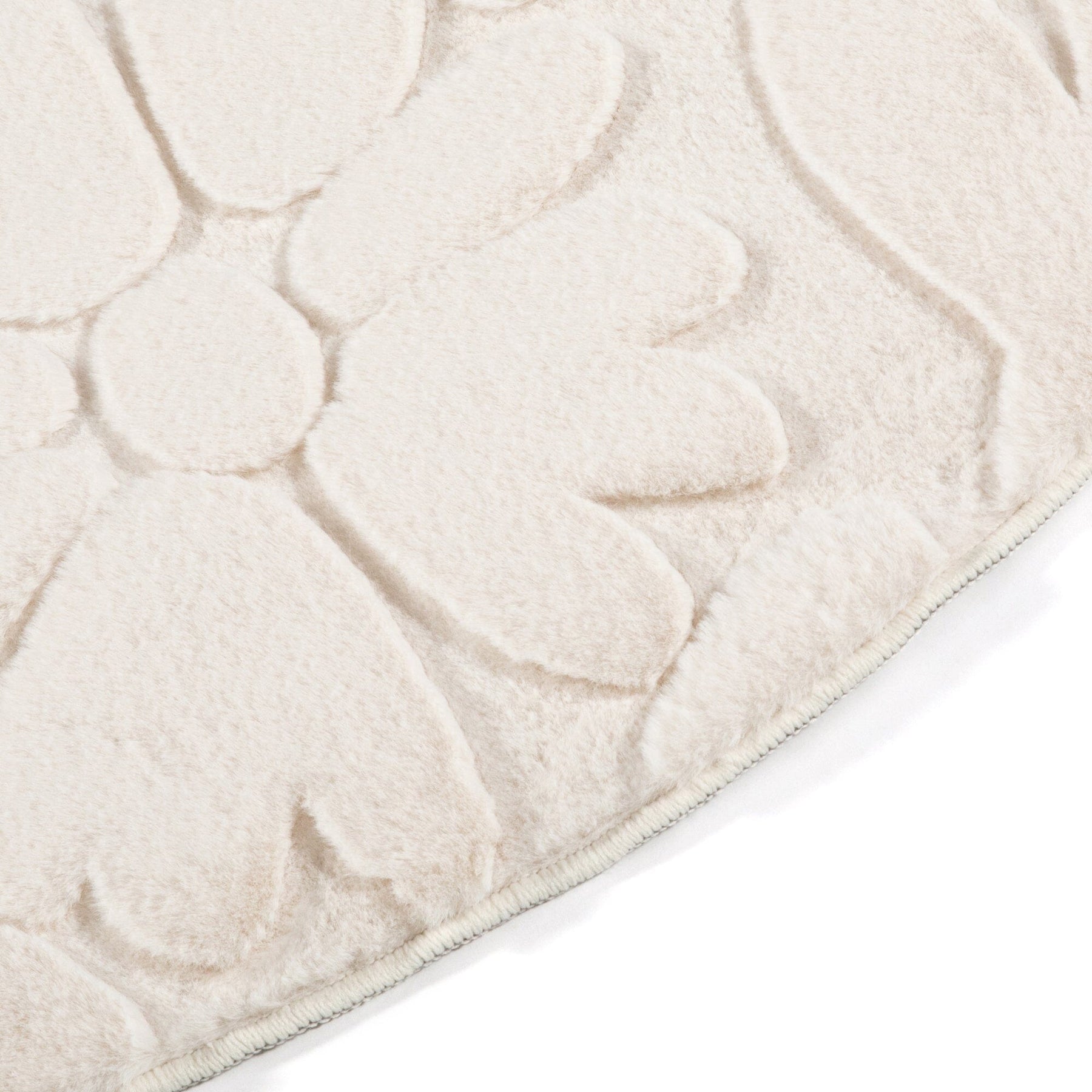 This rug features a three-dimensional floral jacquard design.Inspired by blooming flowers, the plain design has depth.