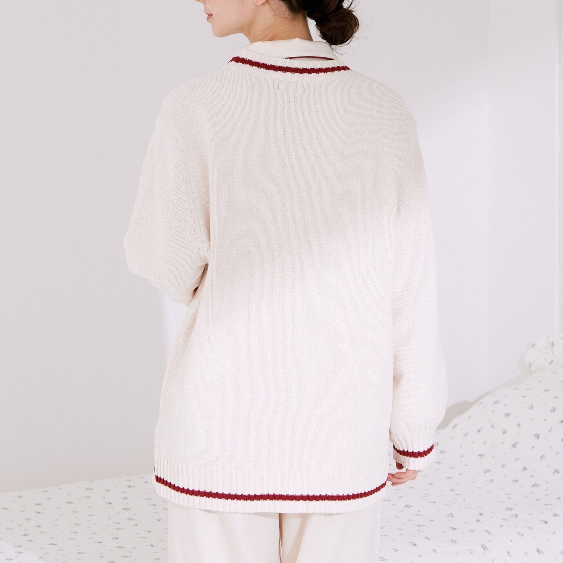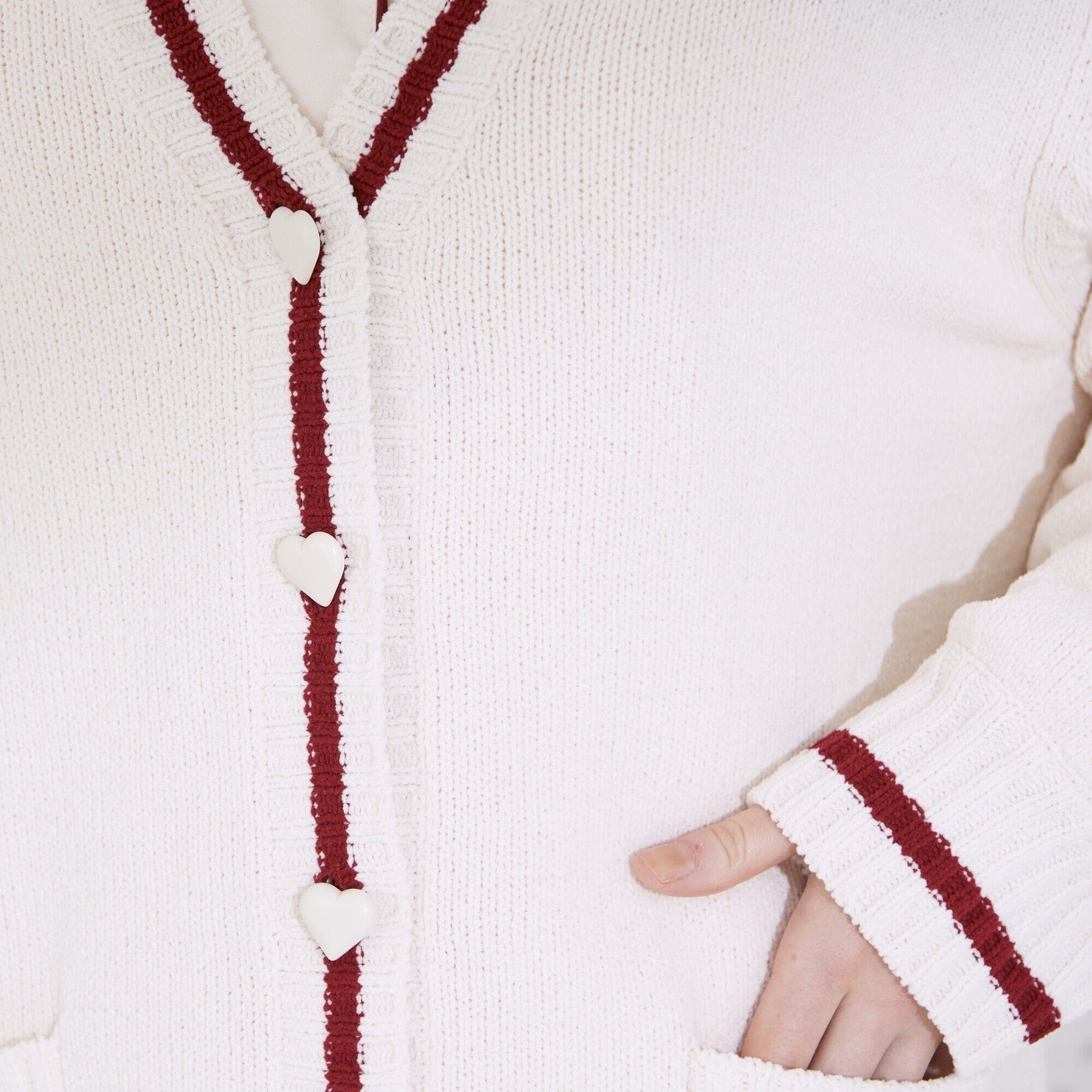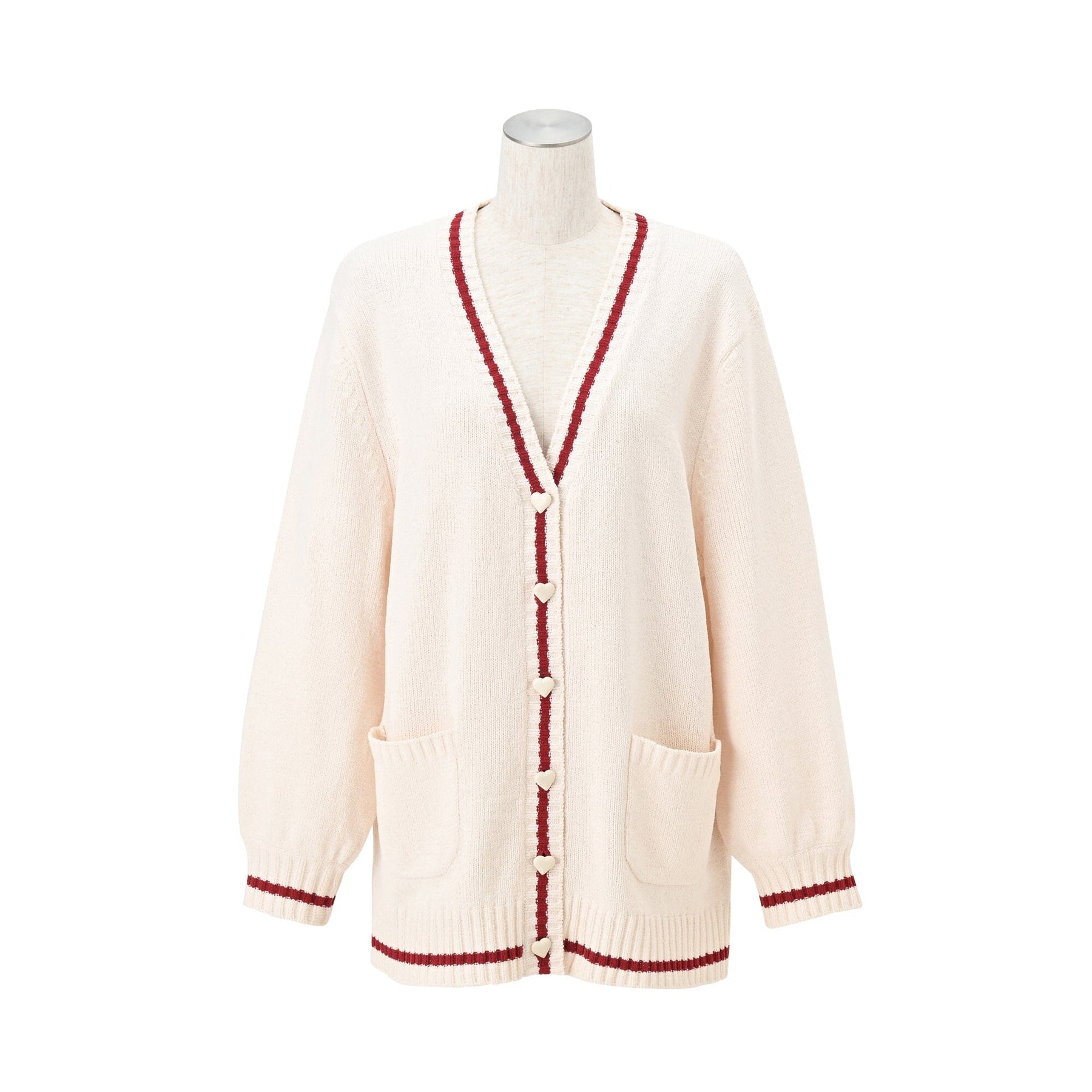This cardigan features large heart-shaped buttons for a cute touch.