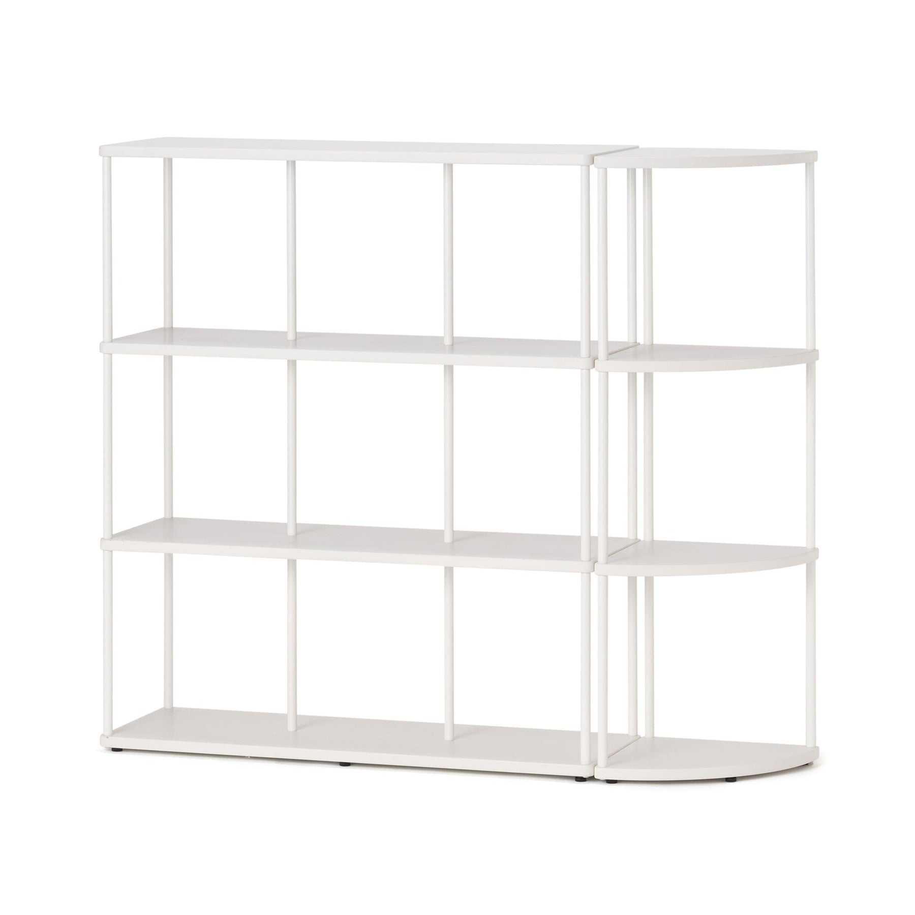 This fan-shaped shelf features a thin, airy pipe design.