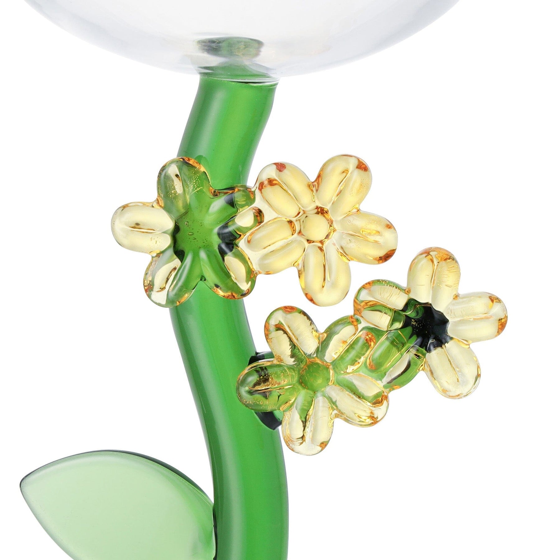 The stem is decorated with a three-dimensional glass flower, making it a great accent for your table setting.