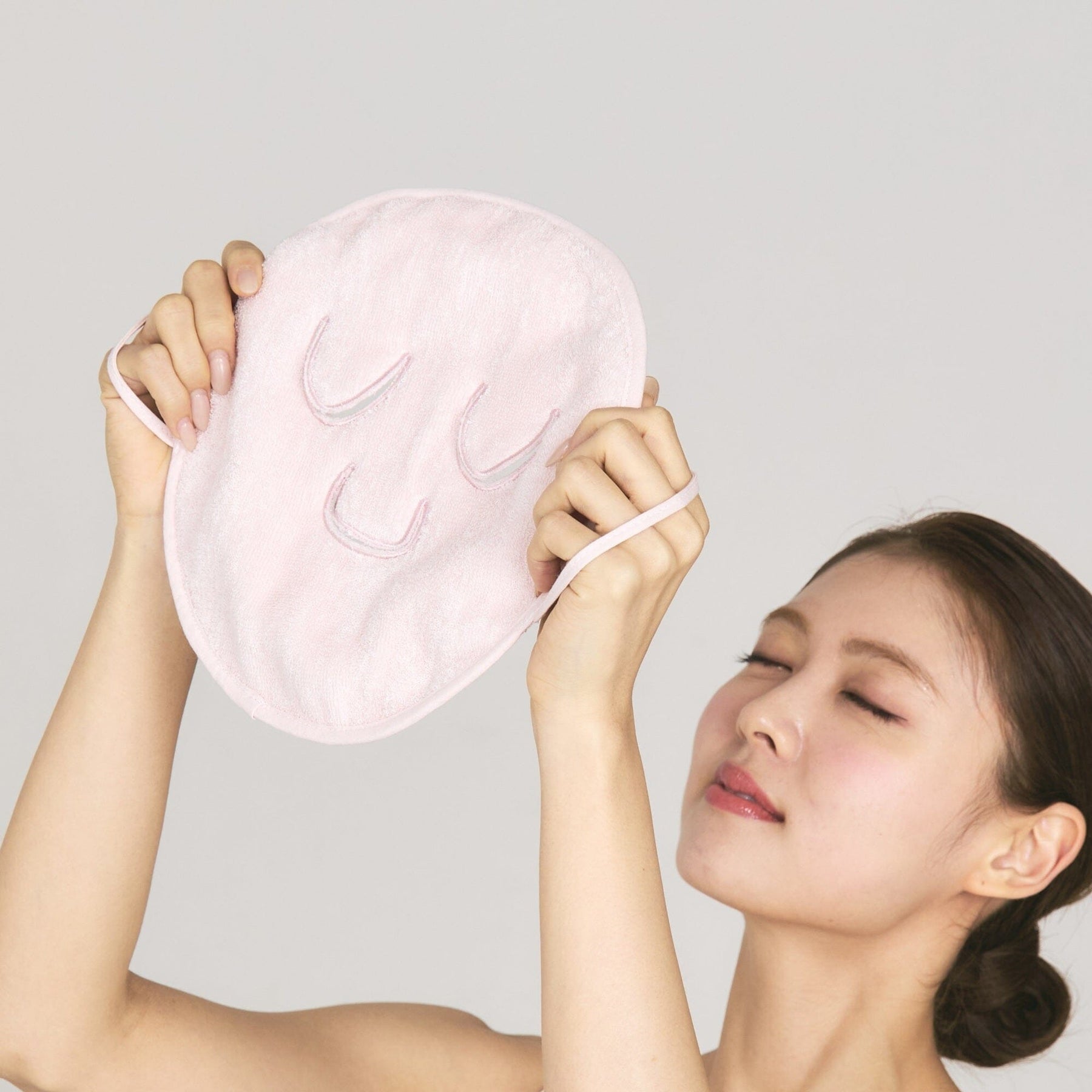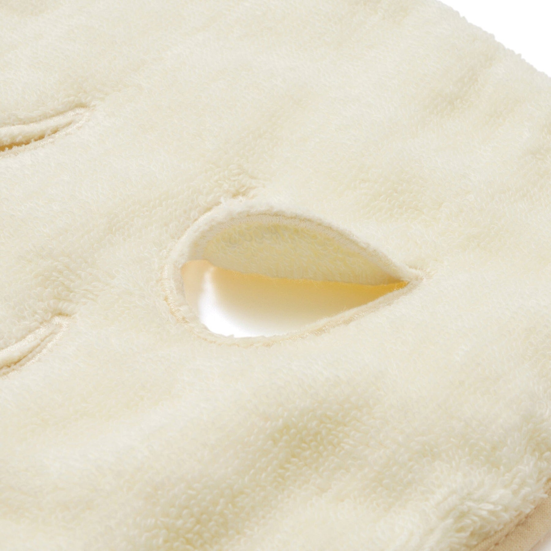 This face towel mask gently envelops your entire face.It has breathing holes for your nose and holes around the eyes.