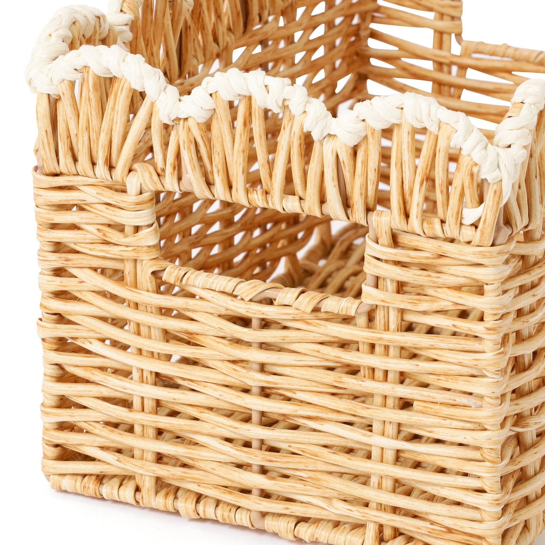 This rattan-style storage box is made of plastic.