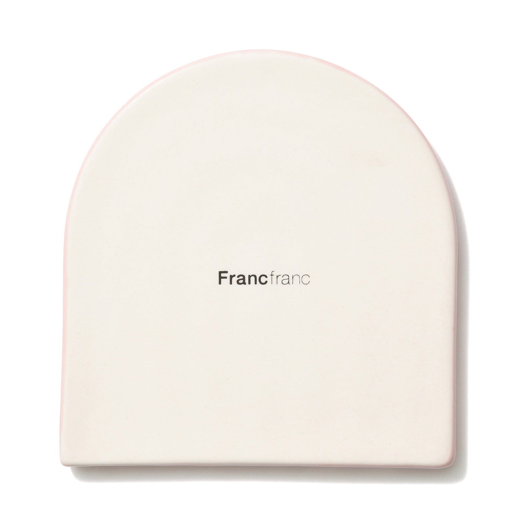 A ceramic coaster with an arch design.