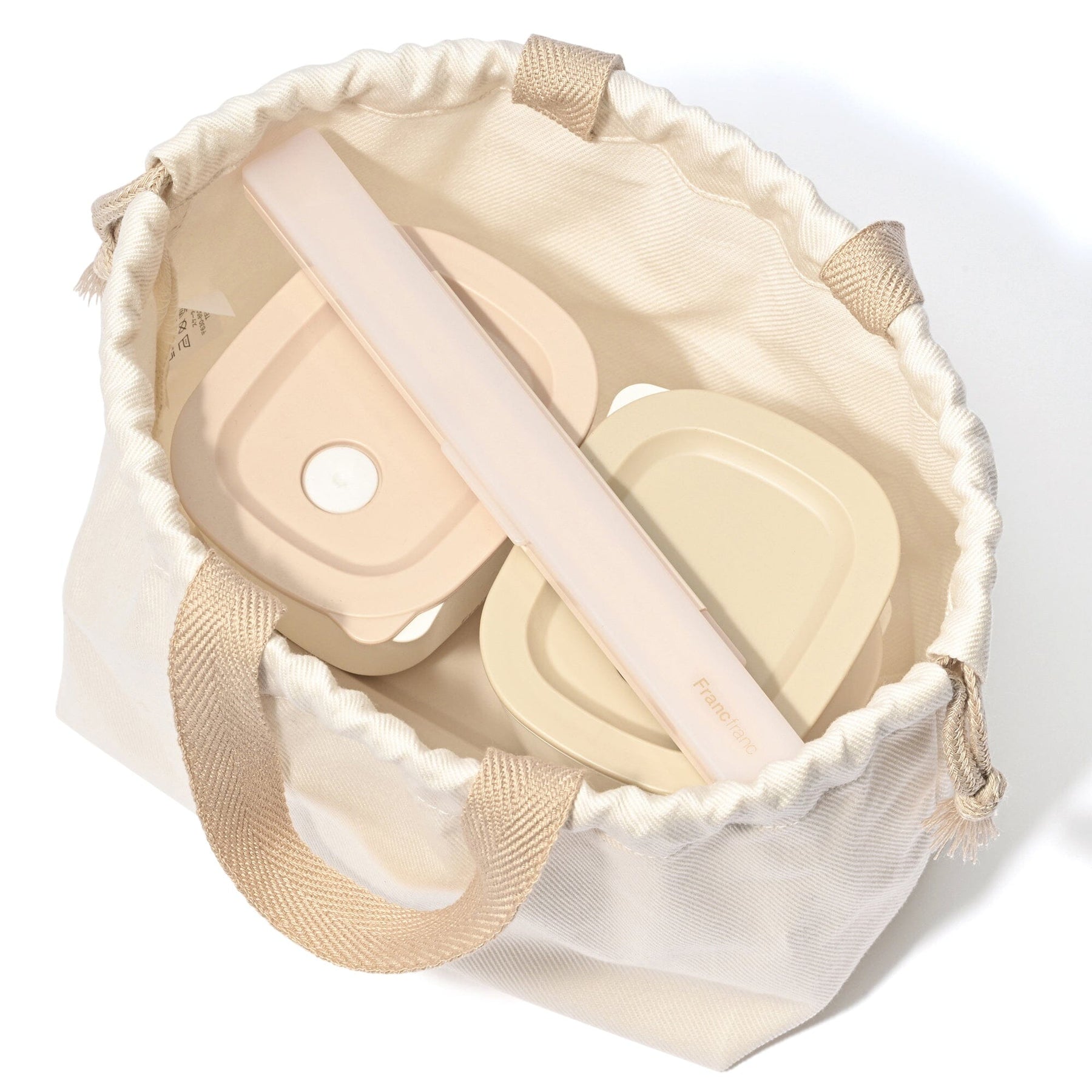 Material: Container lid and body: Polypropylene (with talc), Chopsticks & chopstick case set case body: ABS resin, Case and lid: AS resin, Chopsticks: Acrylic resin, Drawstring bag fabric (outer fabric): Cotton (canvas-like), String: Cotton