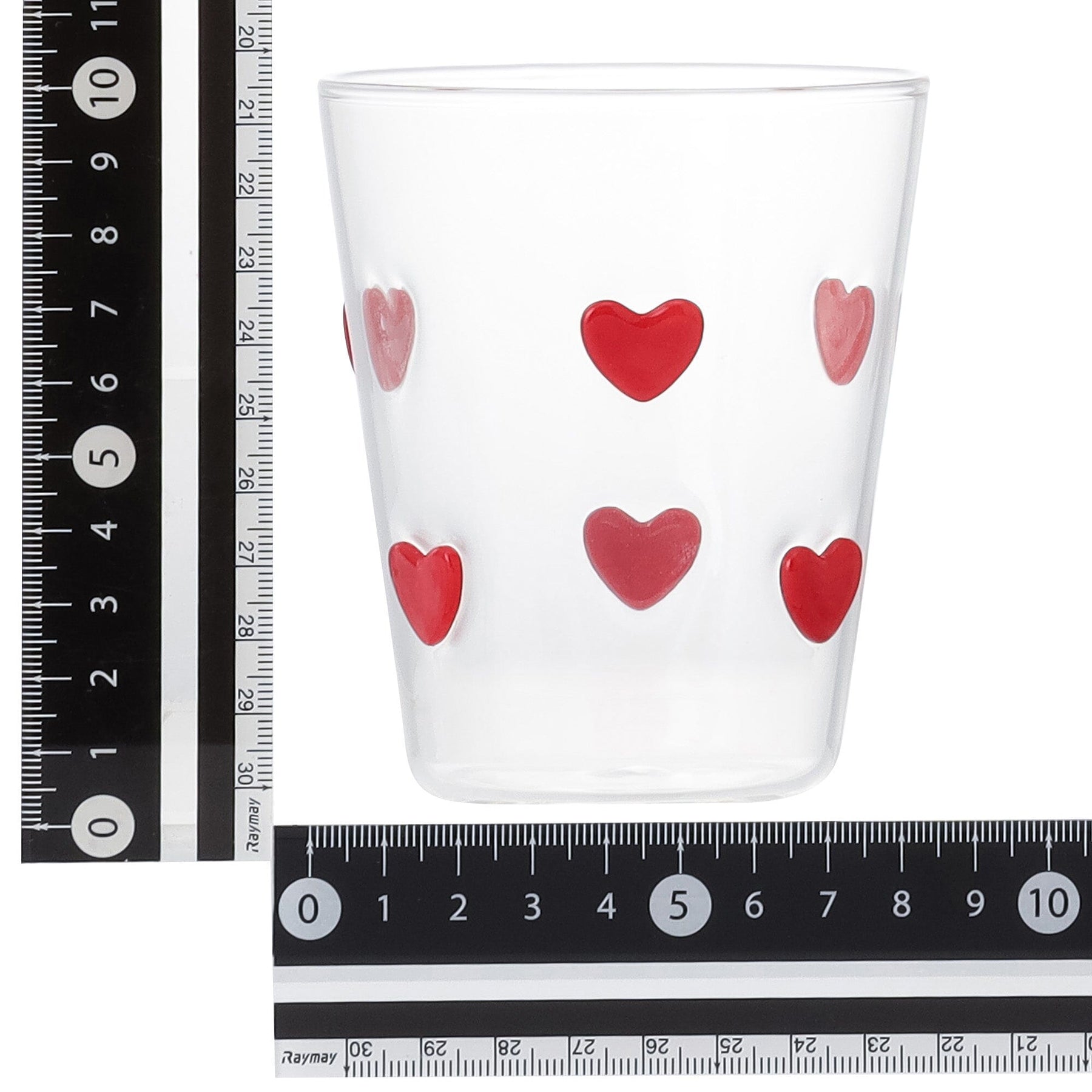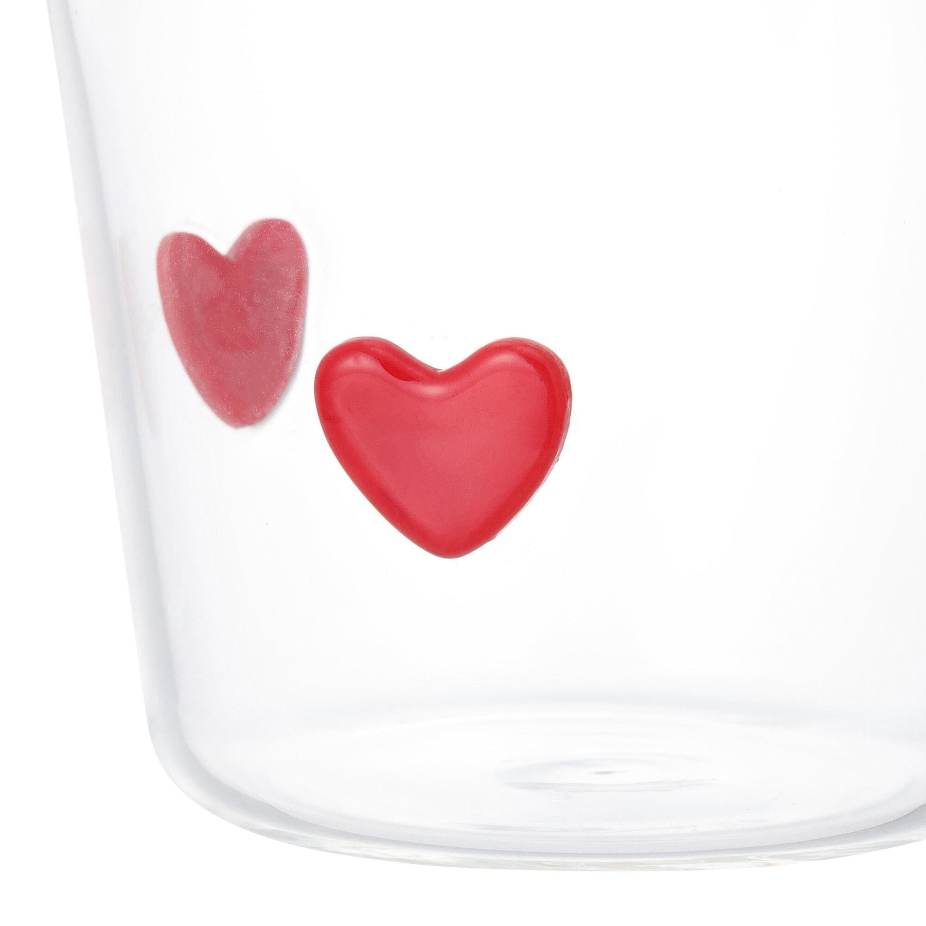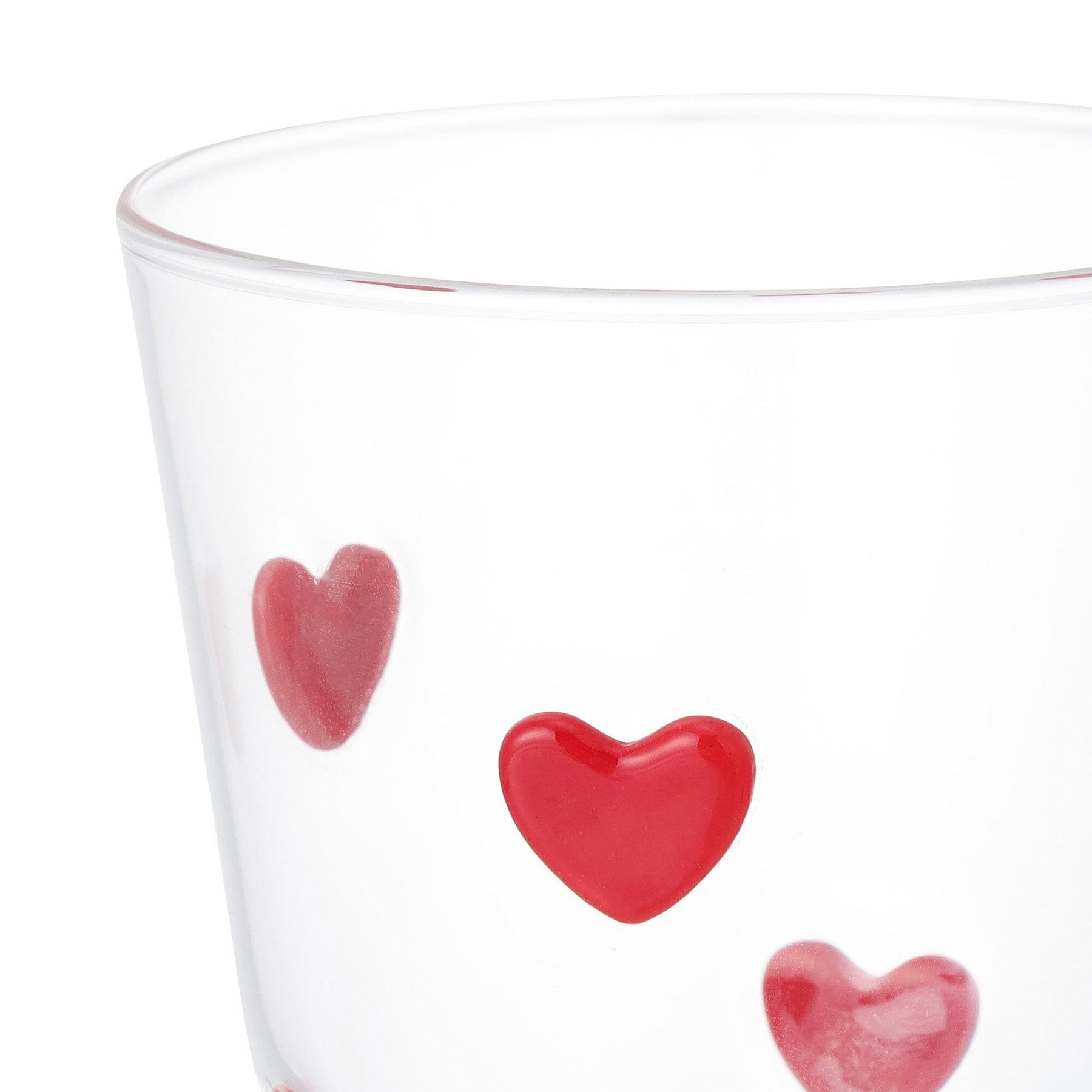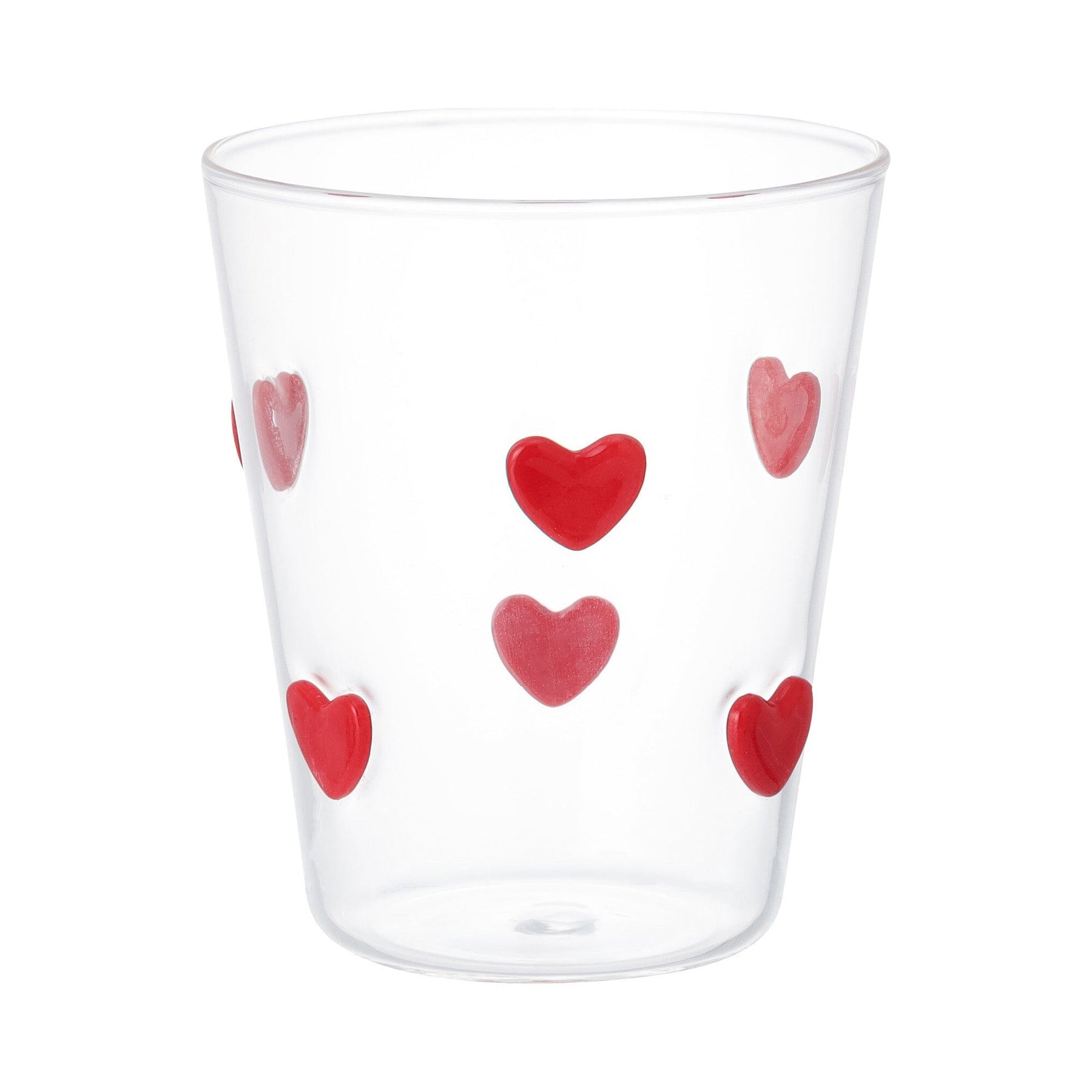 This cute glass tumbler is decorated with lots of hearts.
