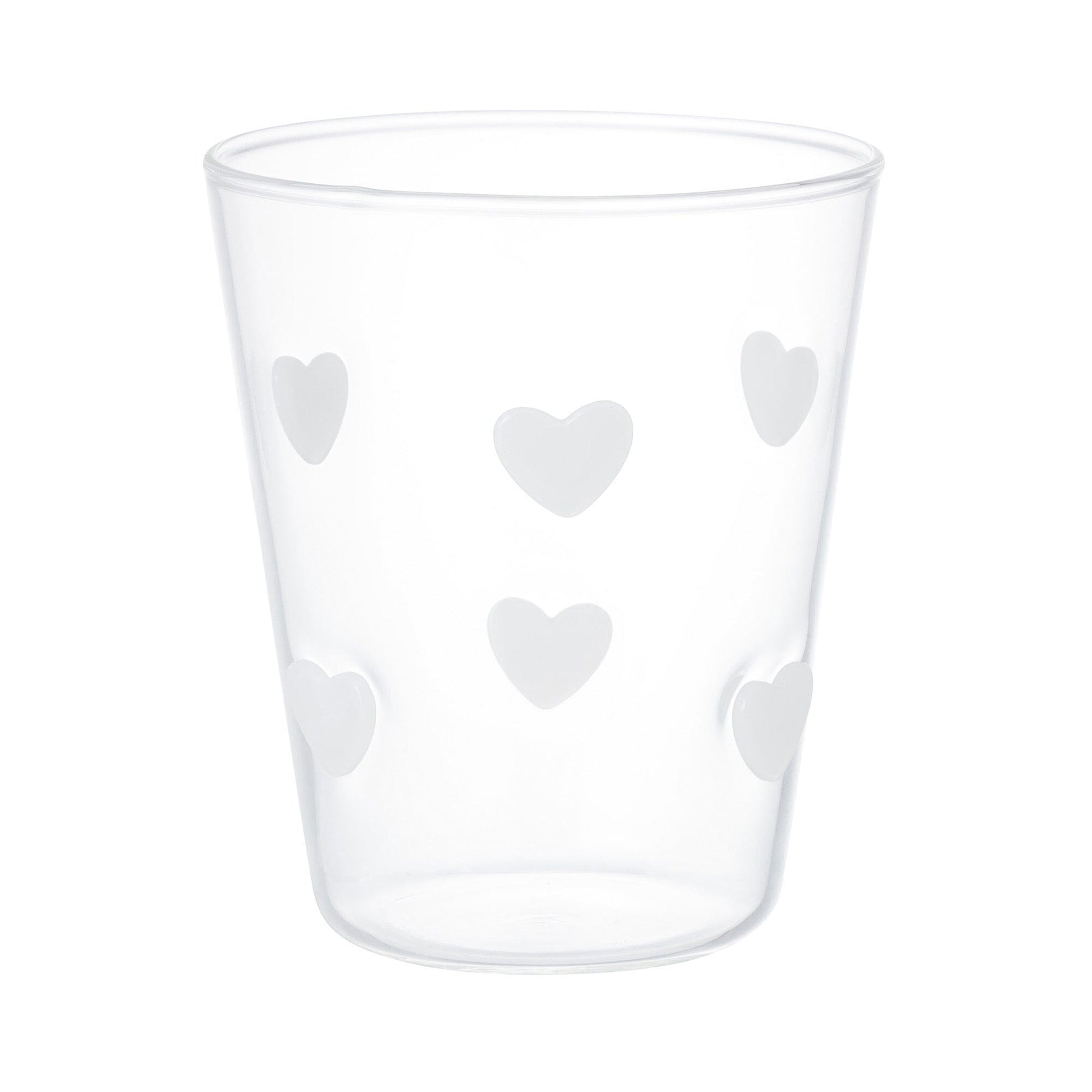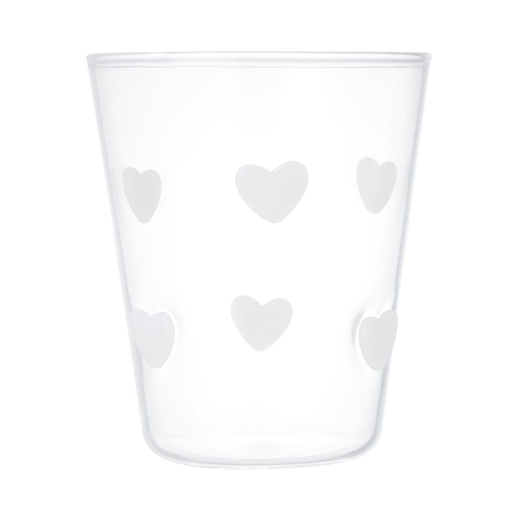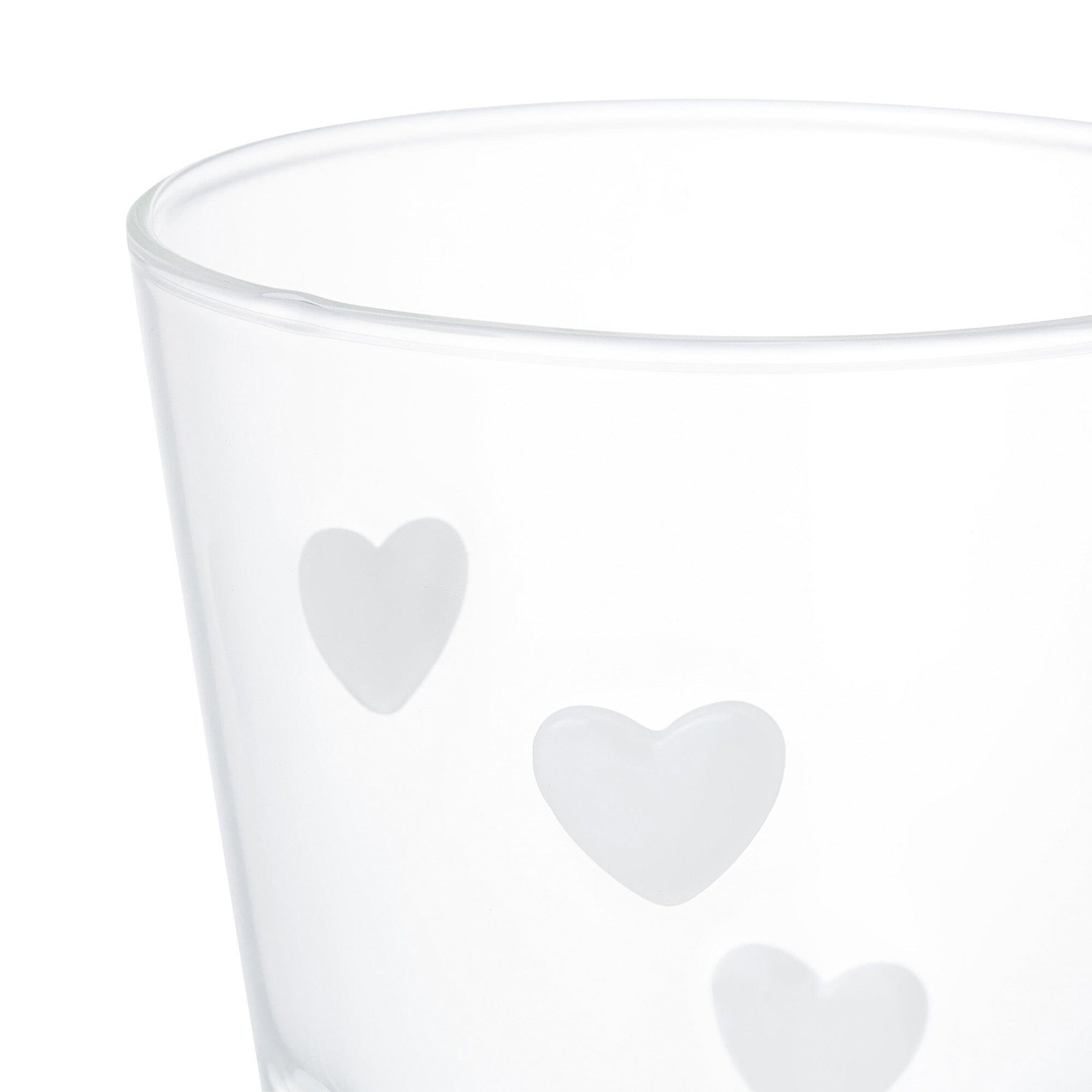 This cute glass tumbler is decorated with lots of hearts.