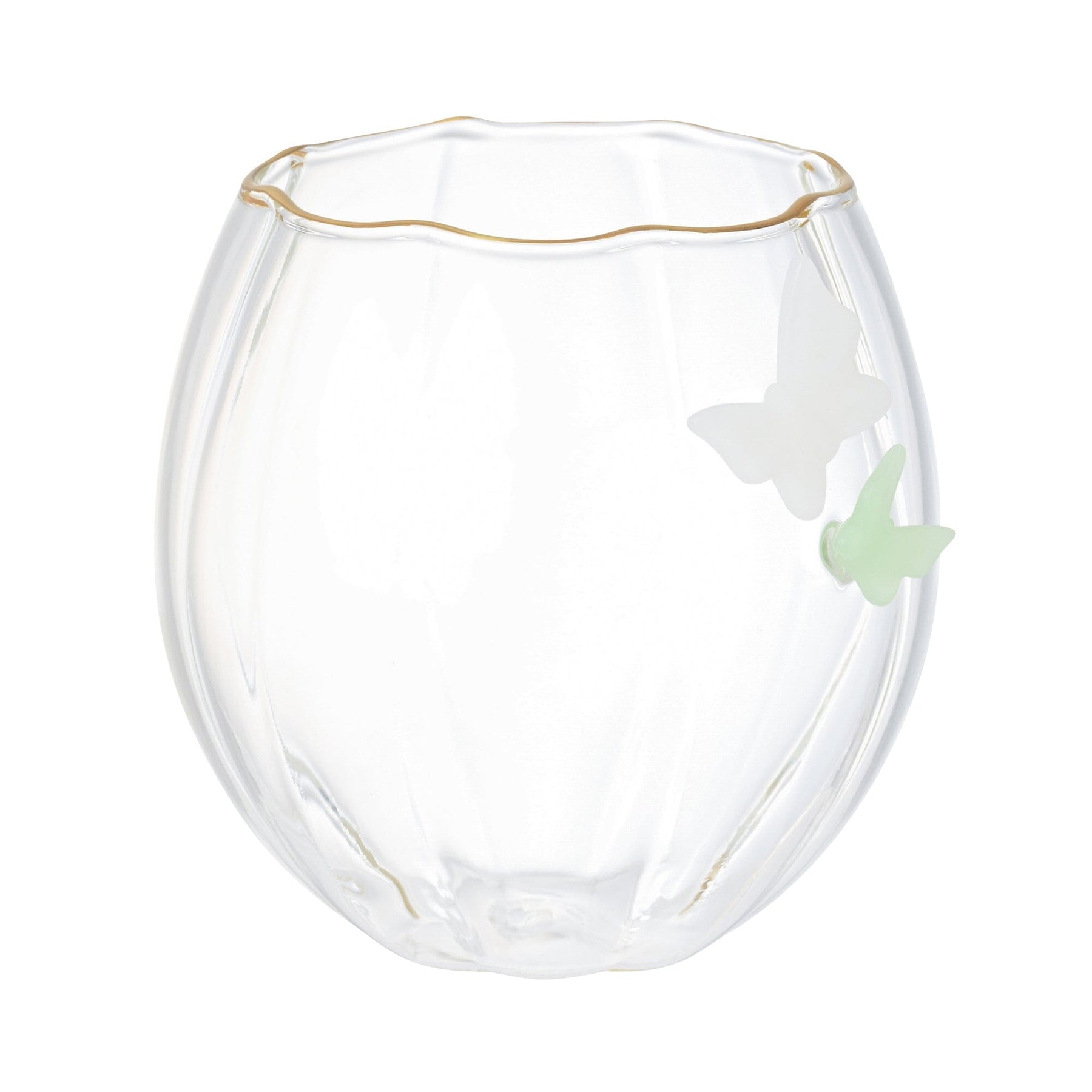 This tumbler is designed to resemble a butterfly perched on a flower-inspired glass.