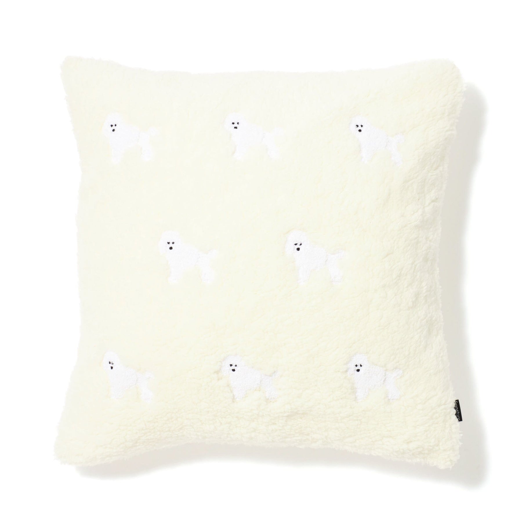 This adorable cushion cover features embroidered dogs.