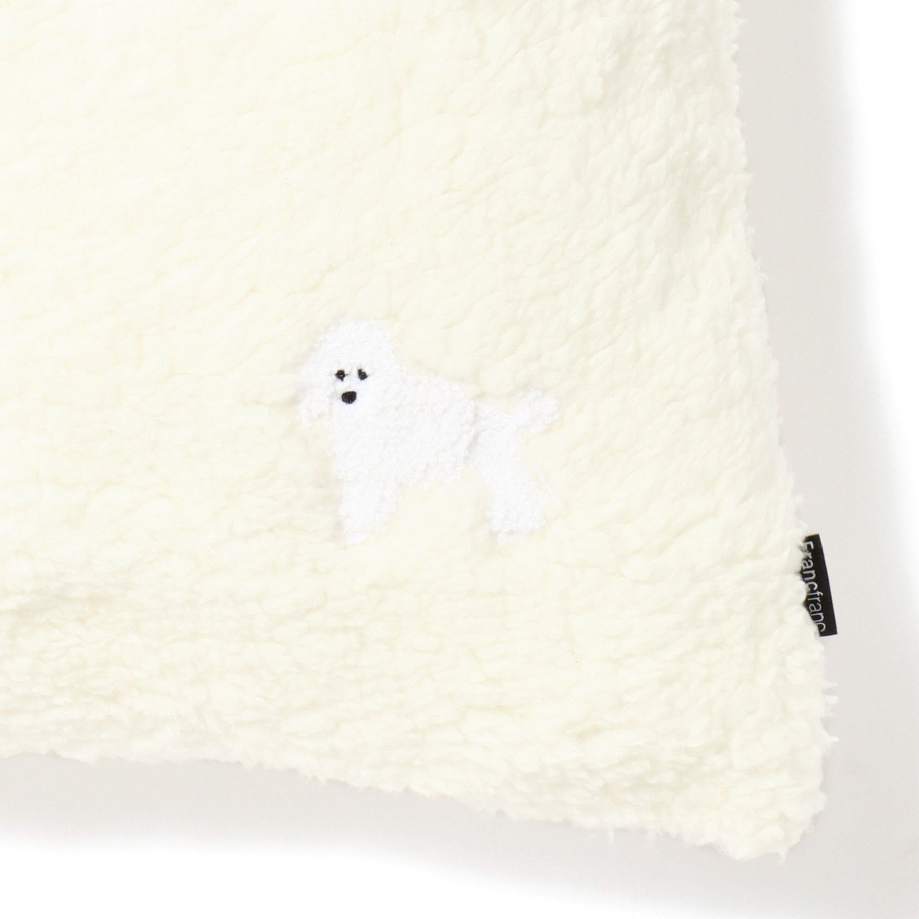 The fluffy fur fabric and dog embroidery create an exquisite, grown-up cute look.