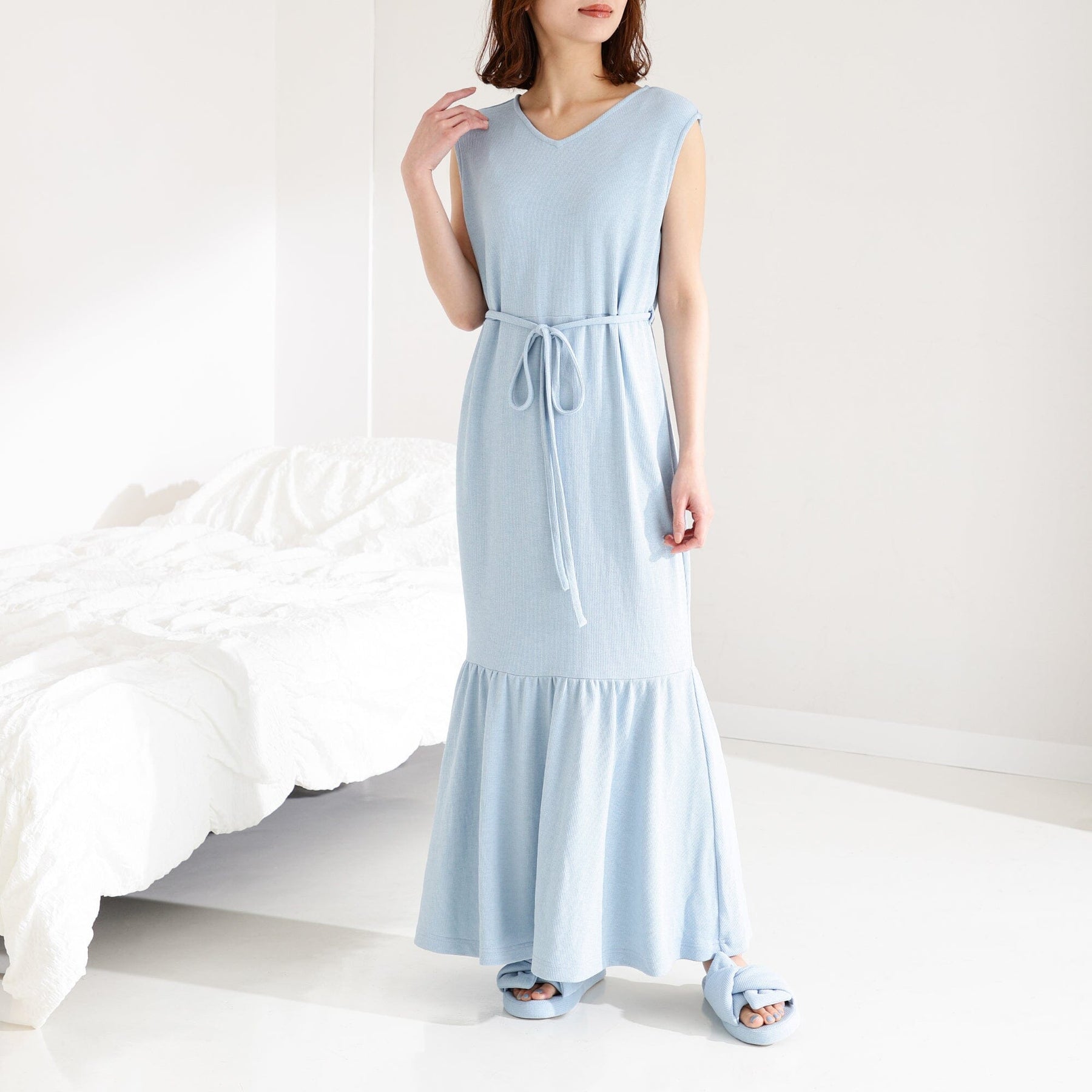 The moderate mermaid silhouette is cute. The length can be adjusted with a waist string, making it easy to use for everyday use, and the relaxed fit is attractive.