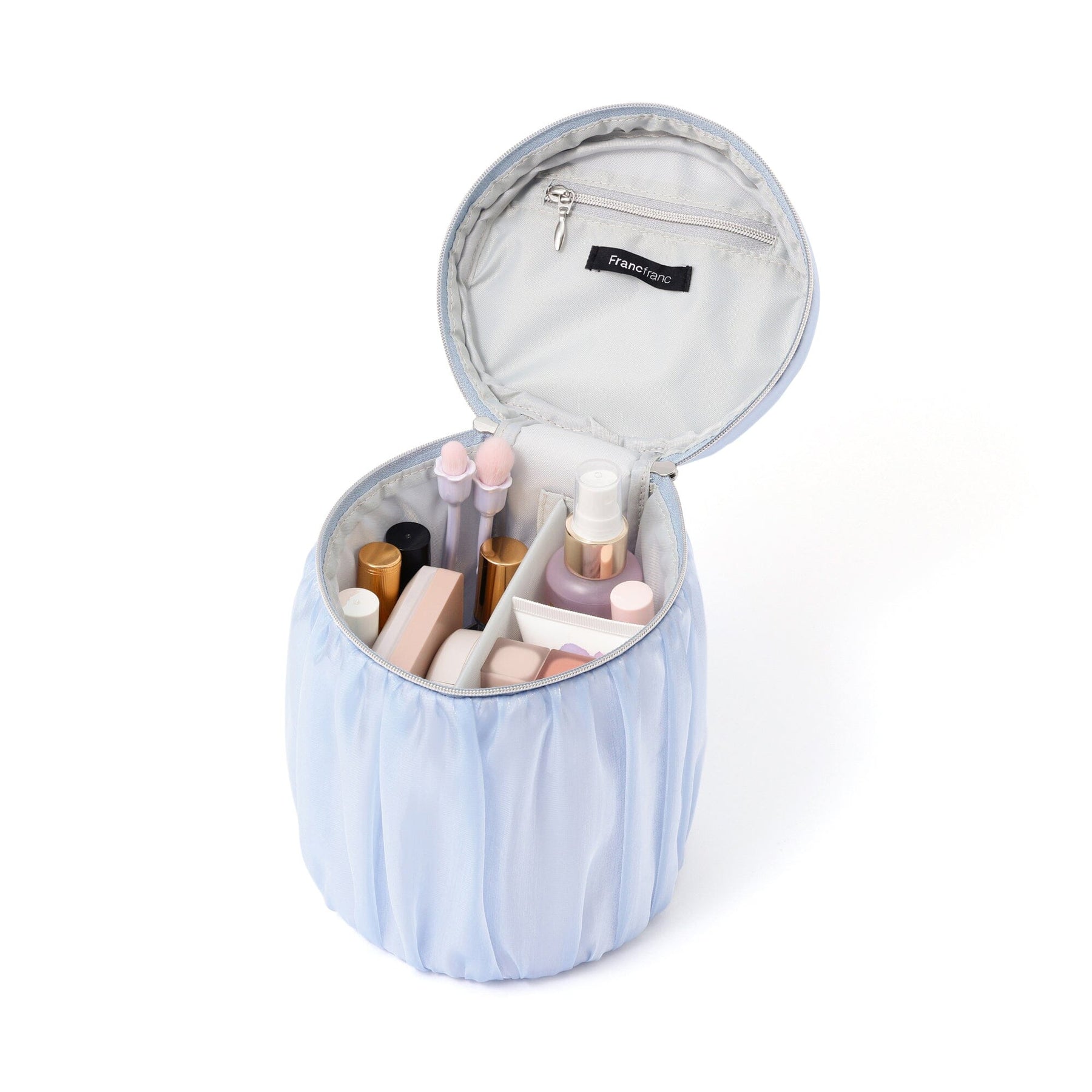 Organdy Flower Vanity Pouch Small Light Blue