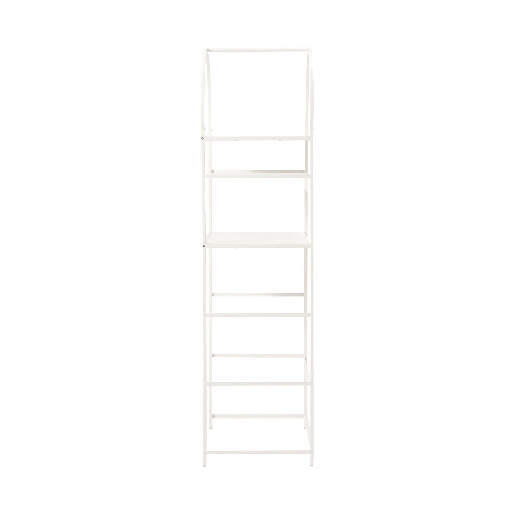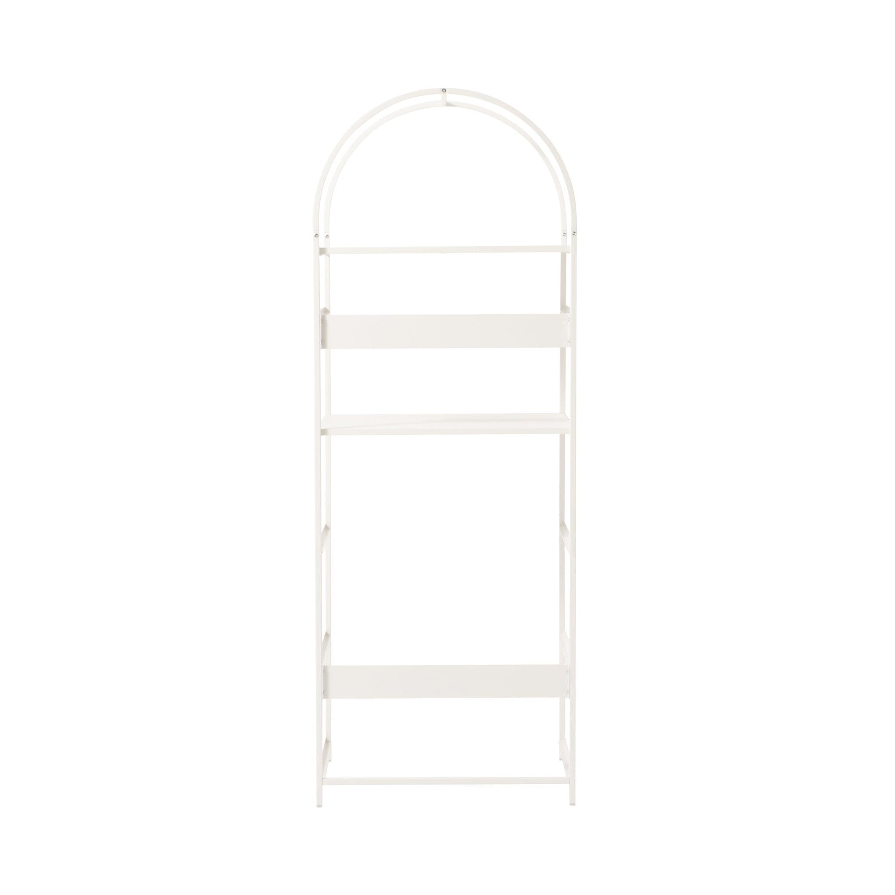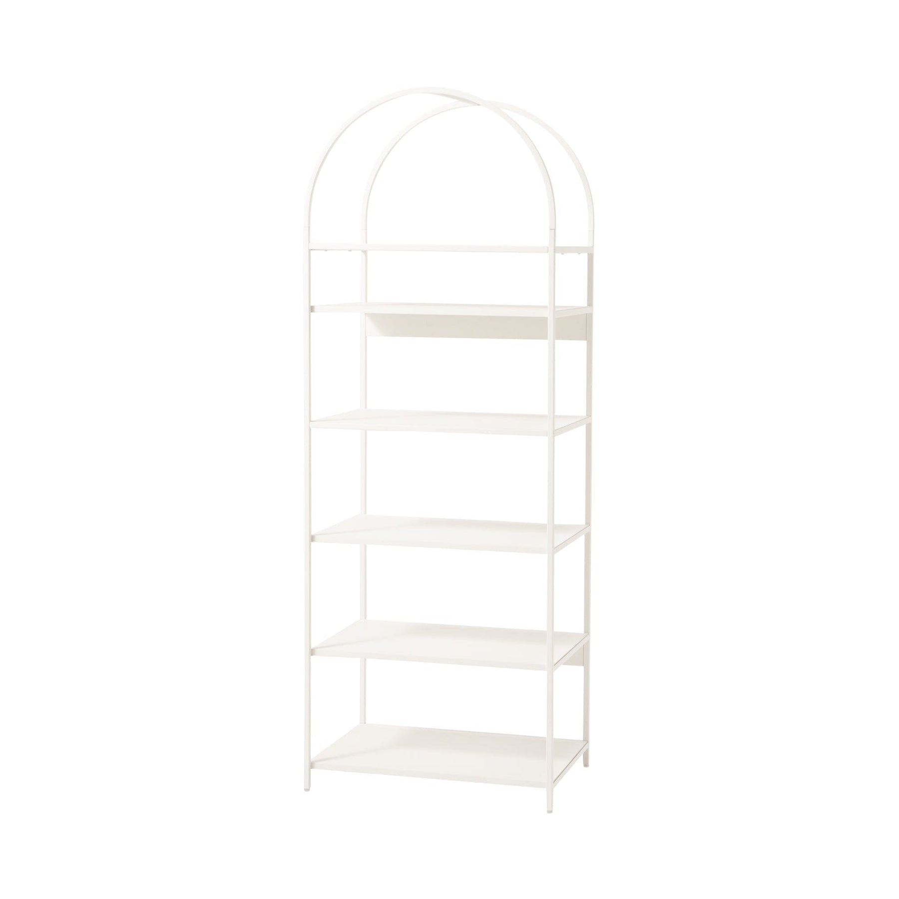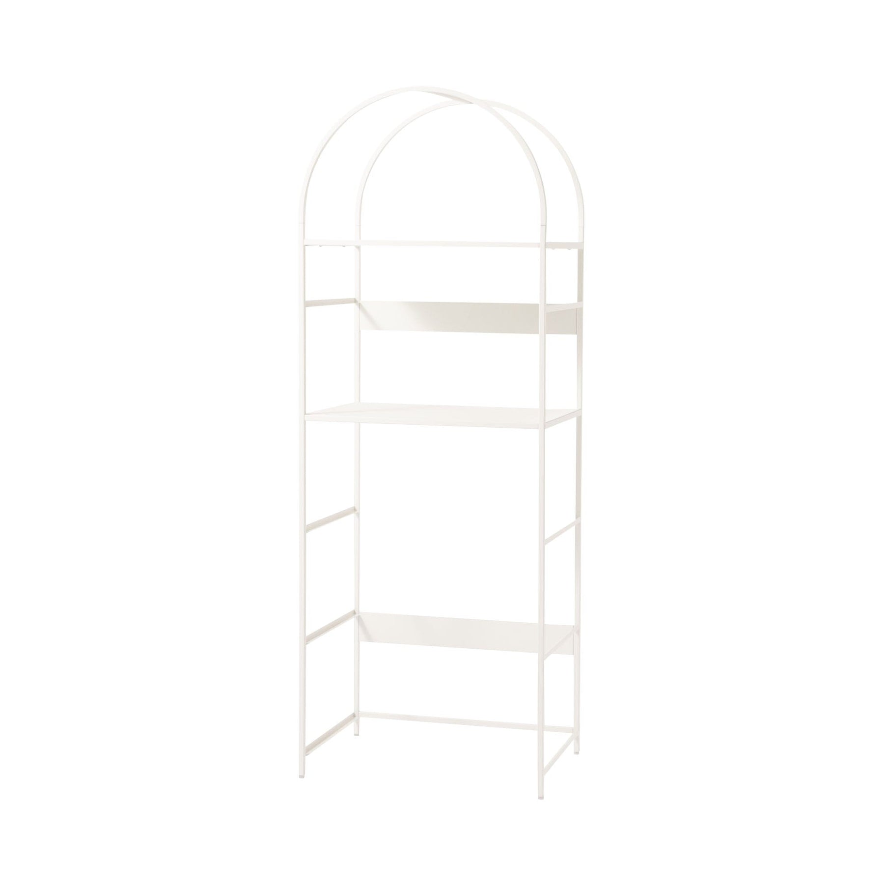 一個時尚時尚的開放式架子,帶有拱門。